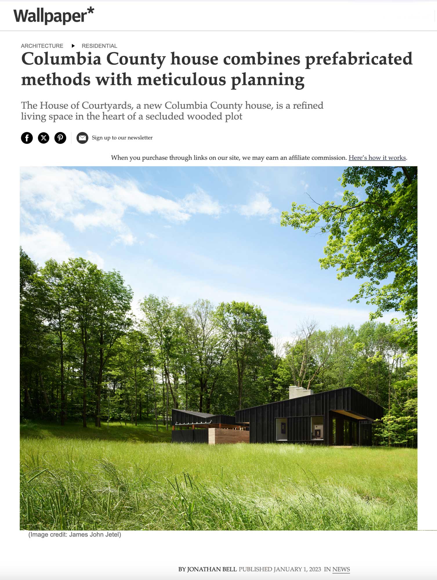 "Planned around a courtyard and covered outdoor spaces, but unified through form and material, The House of Courtyards is a contemporary take on the cabin in the woods.” Read the article by Jonathan Bell.
