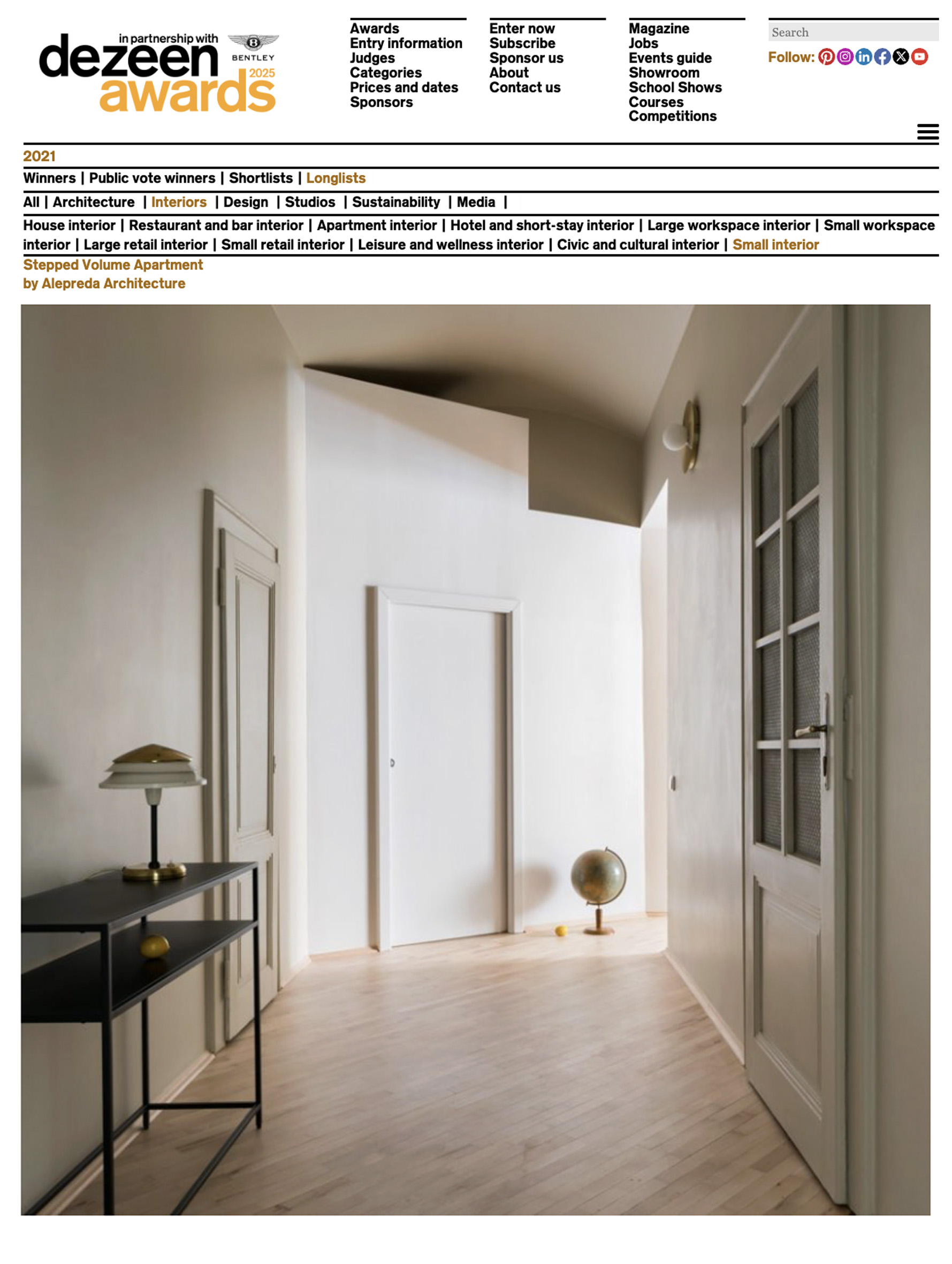 The Stepped Volume Apartment has been longlisted for the 2021 Dezeen Awards in the Interior Category. Over 4,700 entries were submitted from all around the world. Find out more about the project on Dezeen.