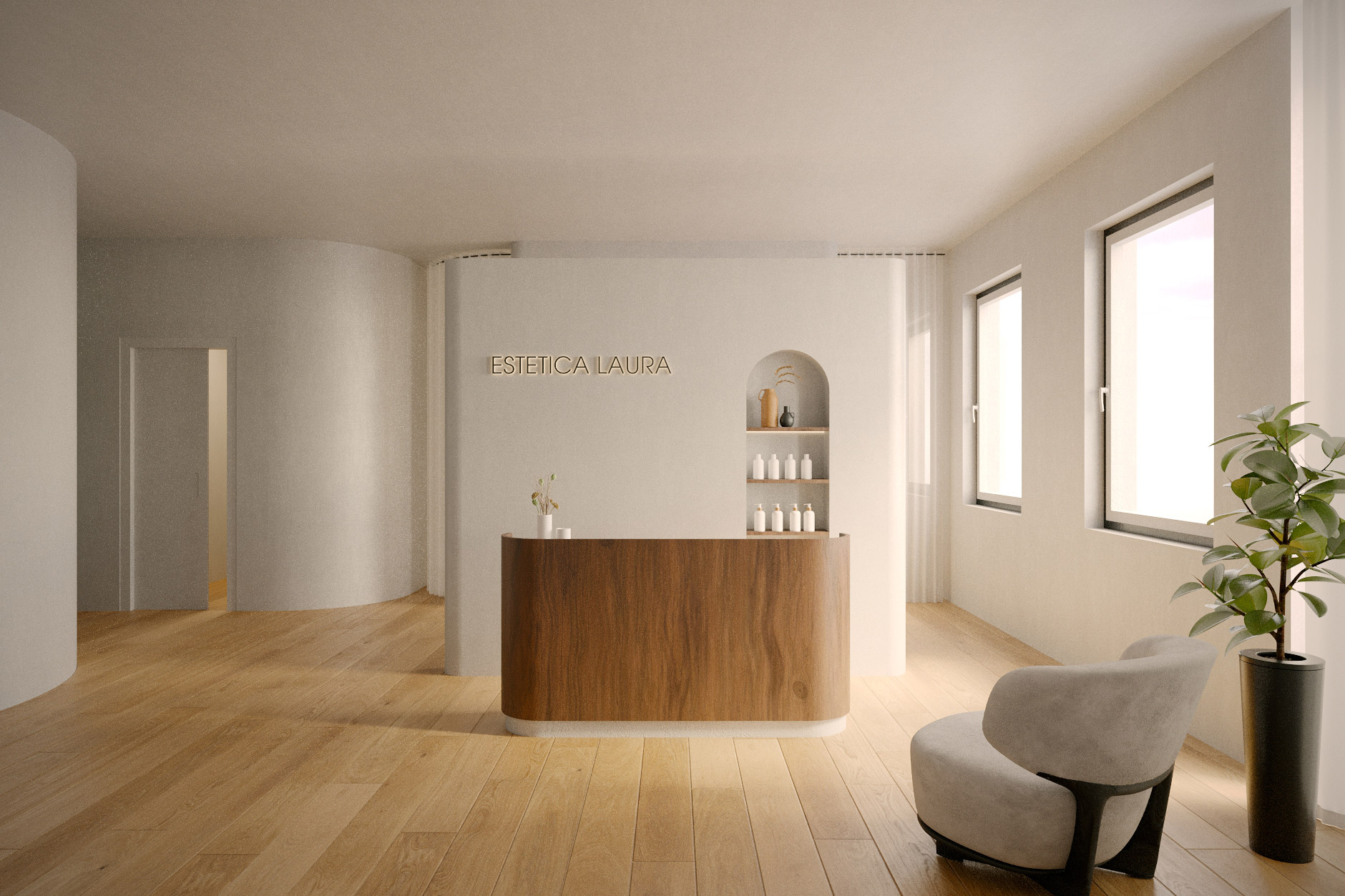 This day spa merges beauty treatments, massage, aroma and light therapy, tanning, and wellness experiences within a softly curved architecture featuring round. Guided by a body, space concept, and natural inspiration, the design creates a sensorial journey that encourages relaxation along a path of discovery.